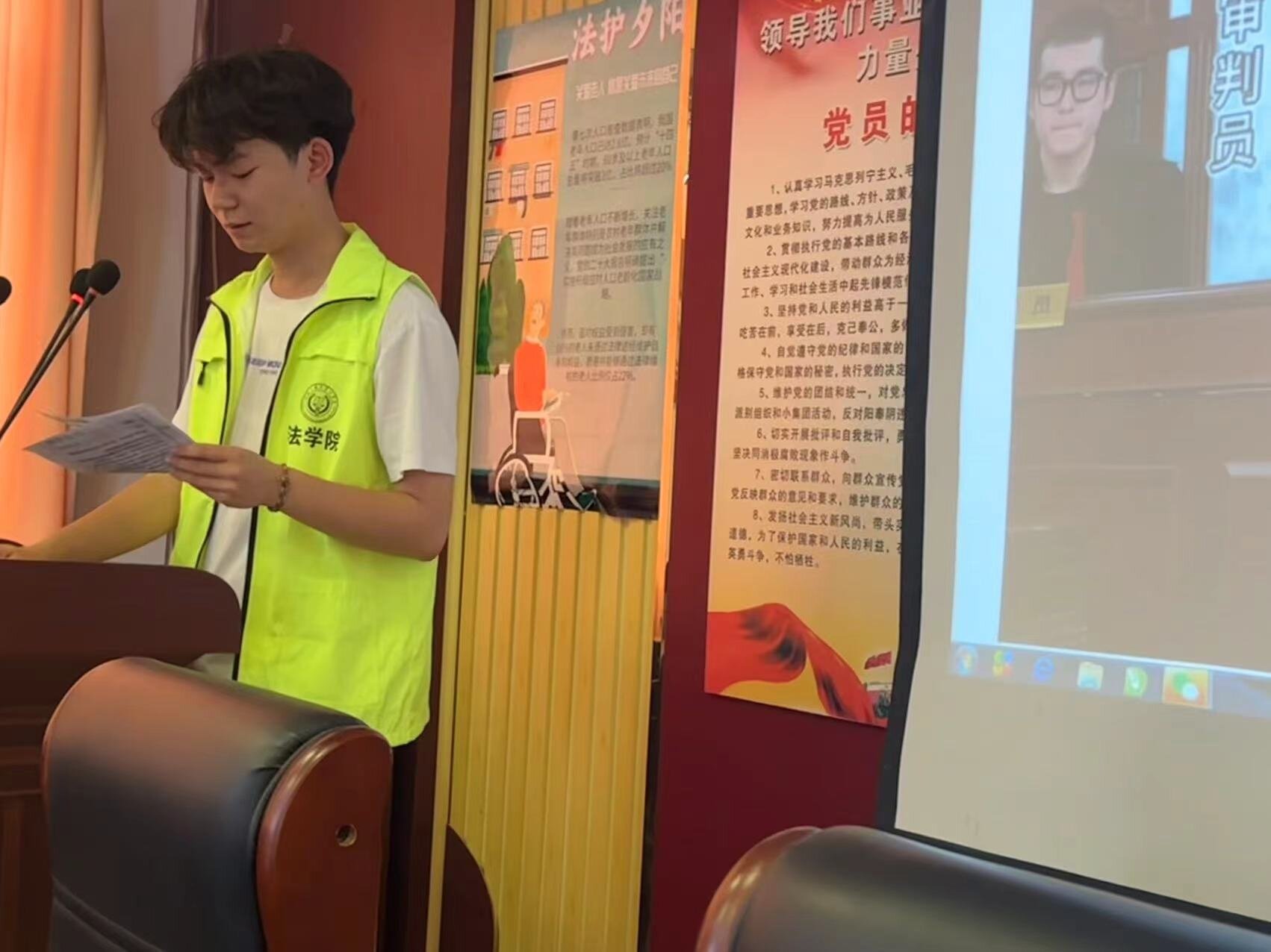 宋宇航,男,法学2206班团支书,在思想上,他积极宣传党的先进理论和思想,鼓励督促同学们积极学习青年大学习,带领大家在实际行动中奉献社会。在学习上,他目标明确,勤奋踏实,努力学好各项知识,不断提高自己的素养。在生活中,他性格开朗,积极乐观,尊重老师和领导,深知同学、朋友间良好关系的重要性,所以真诚待人,与人为善。既然选择了远方,就要风雨兼程,跨过星河迈过月亮,去努力迎接更好的自己,他始终坚信,通过自己的不断努力,能够迎来更好的自己,实现人生价值!
