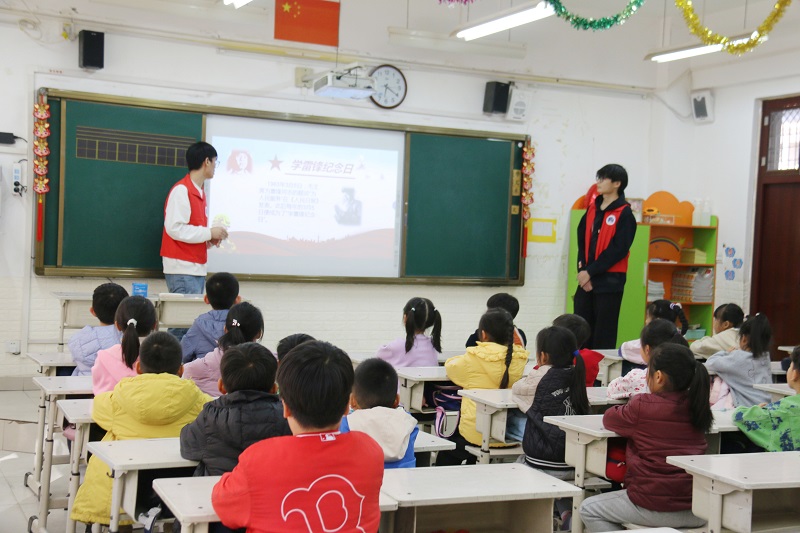 的大学生志愿者们走进郑州龙门实验学校,同龙门实验学校学生们开展了一场精彩纷呈的学雷锋月活动。活动内容丰富多样,包括宣讲雷锋精神的PPT、情景剧、有奖问答、绘画和歌唱雷锋等环节,让小学生们在欢乐中学习和感受雷锋精神。