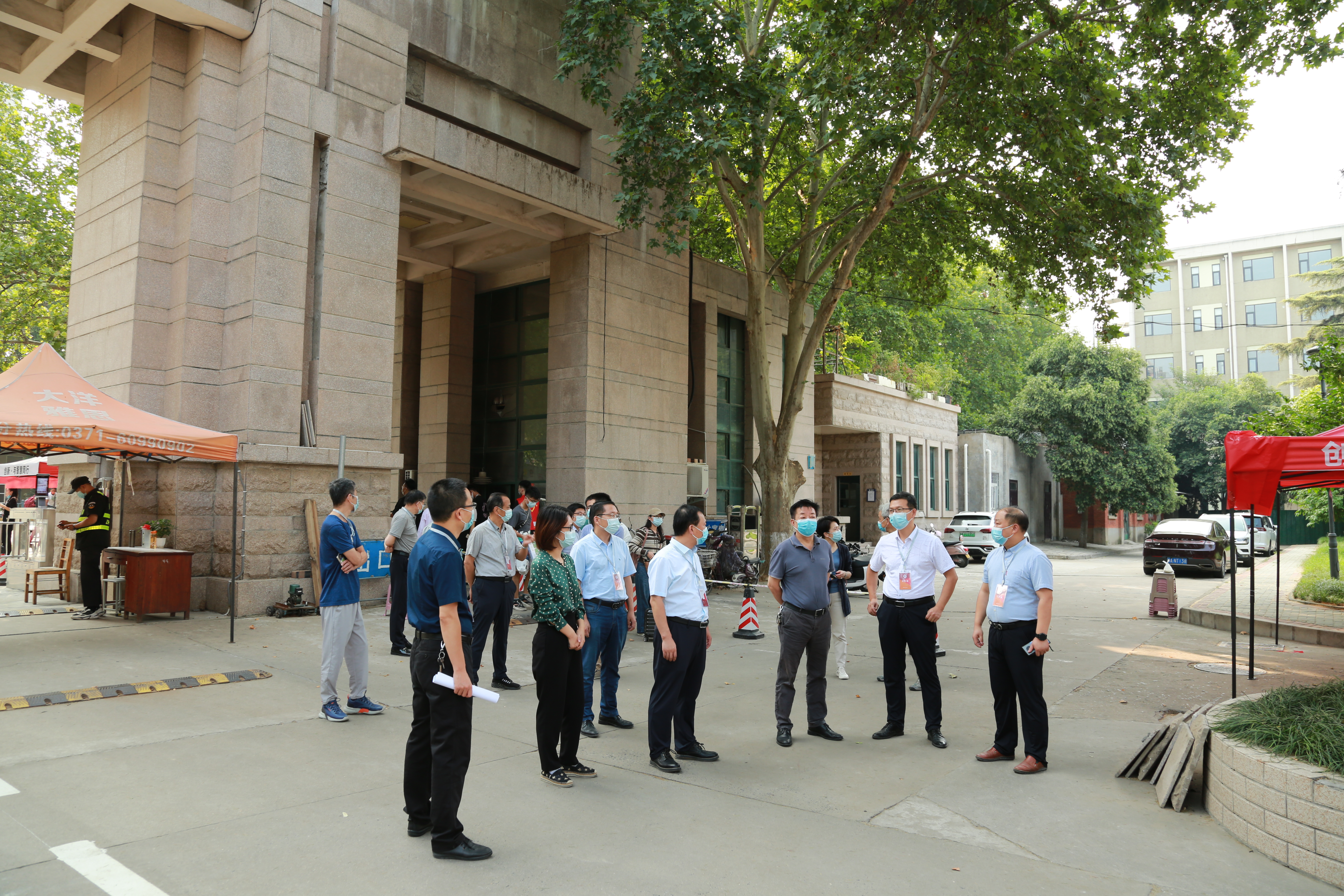 李学雷一行首先来到嵩山路校区东门返校点看望慰问返校学生和一线工作人员。在学生通道入口处,他详细了解学生入校资格审查、核酸检测和行李转运等流程,就防疫物资储备、返校审批查验、突发情况应对等方面提出了具体指导意见。随后来到学生宿舍,检查学生健康观察区和新生宿舍准备情况,要求相关单位全面细致做好学生宿舍管理服务工作,确保学生宿舍环境整洁、出入有序。