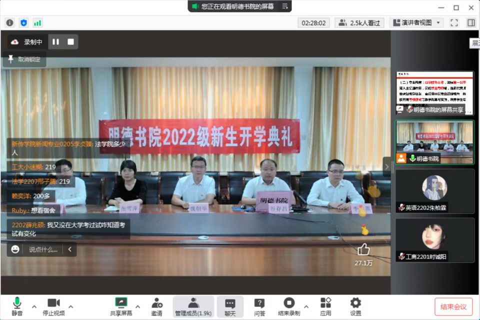 通过网络直播举行2022级新生开学典礼,美高梅金殿