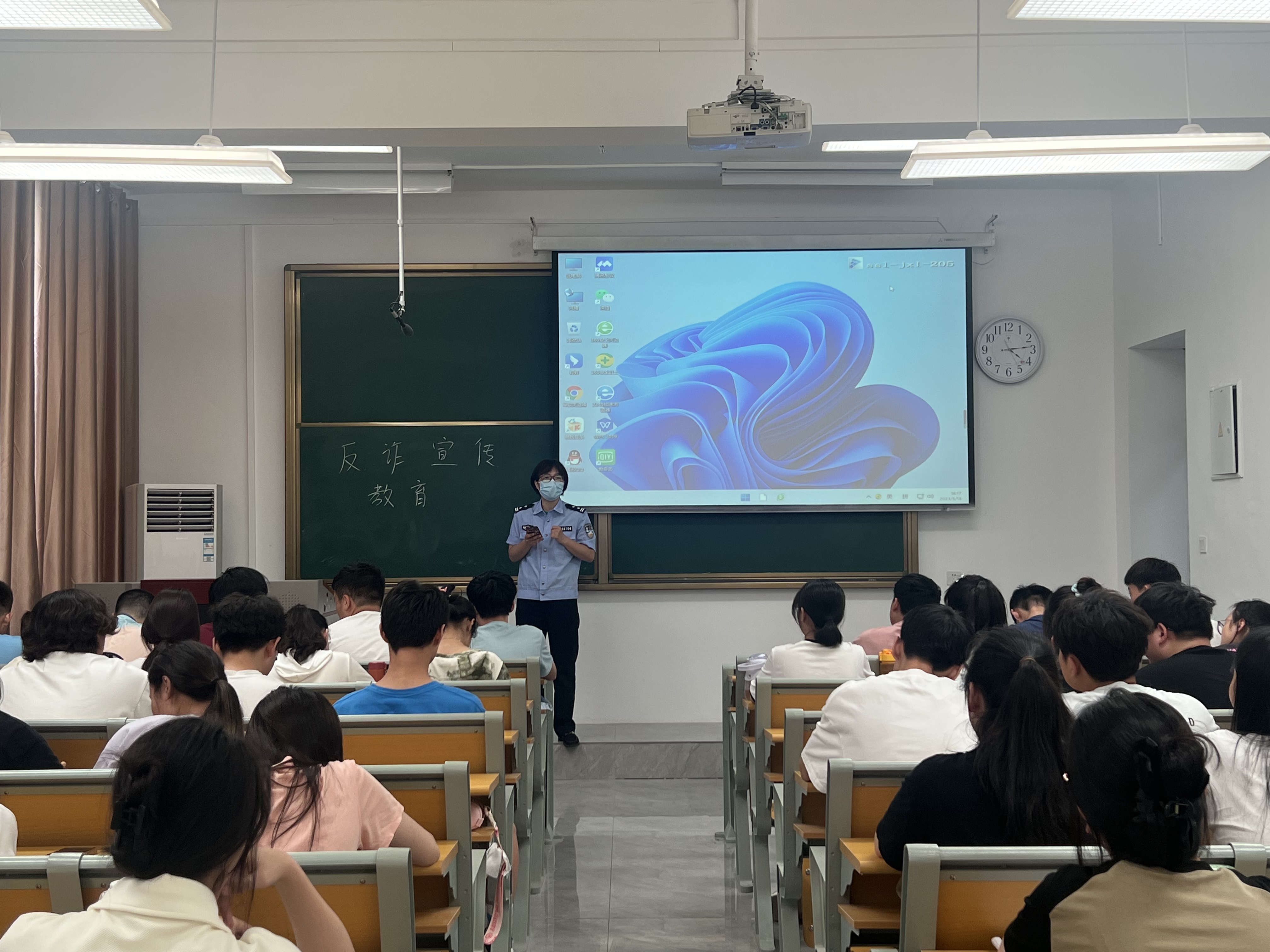 讲座上,尚警官以高校学生常见的诈骗类型为切入点,结合典型案例,从买卖游戏账号装备、冒充QQ微信好友、咸鱼等二手网站私聊转账、收发快递共享屏幕、刷单、买卖 身份证银行卡信息等多方面多角度介绍了诈骗分子及其团伙针对大学生常见的诈骗方式和手段,向同学们讲授了防范电信网络诈骗的必备知识,阐明了诈骗的危害以及防范的重要性。最后,尚警官指出,随着科技进步,诈骗手段也越发高级,大数据时代下个人信息的泄露使得诈骗行为难以分辨,呼吁广大学生在面对风险时务必保持高度警觉,树立安全意识,做出正确的应对和判断,自觉远离、抵制电信网络诈骗侵害,倡导全体学生积极投入到反诈工作中,形成“全员反诈”的浓厚氛围。