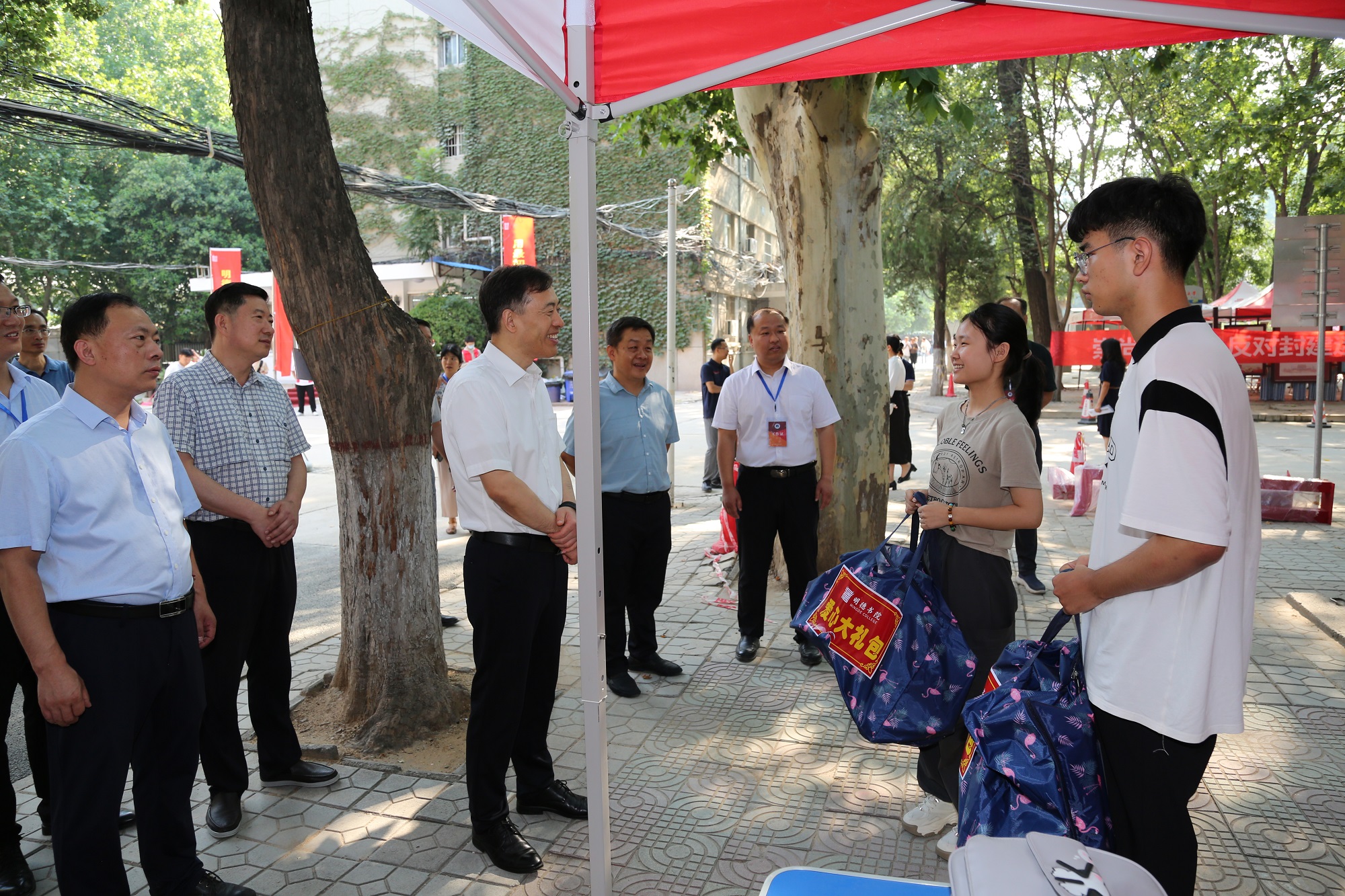 领导班子多次深入迎新现场,对辛勤奋战在迎新一线的师生和志愿者表达慰问和感谢,并与家长进行亲切交谈。在走访学生宿舍的过程中,校领导详细了解新生入学情况及感受,耐心解答同学们提出的问题,殷殷嘱托让新生们倍感温馨。