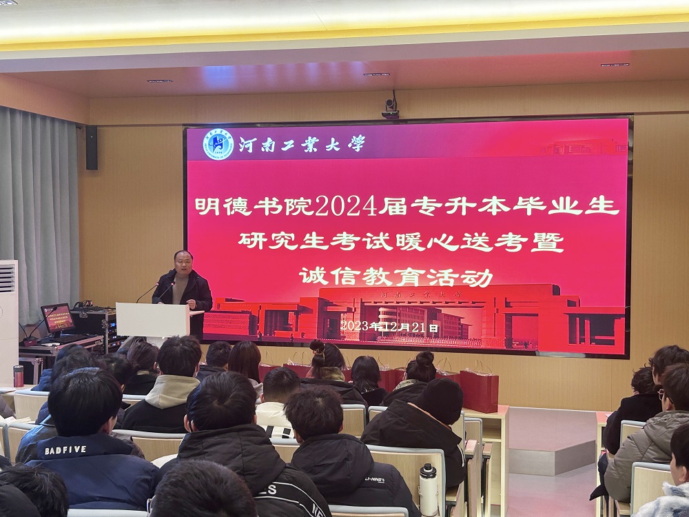 党委书记魏朝举、院长谷存昌、党委副书记刘飞翔、副院长张雪萍和2024届110多名考研学子参加了此次活动,活动由毕业班辅导员王欢老师主持。