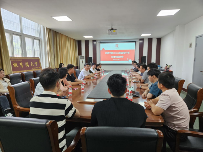 党委书记魏朝举、教学办主任李自新、2024届专升本毕业生辅导员王欢、2024届专升本毕业生代表参加本次会议,会议由王欢主持。
