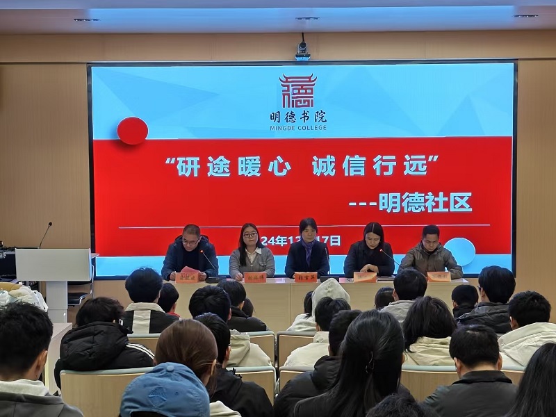 高度重视学生们的备考情况,为增强学生的备考信心,传递学院的温暖与关怀,并进一步强化考生诚信意识,12月17日,明德社区在实验楼118报告厅举办2025届考研学生慰问暨考生诚信教育大会。美高梅金殿