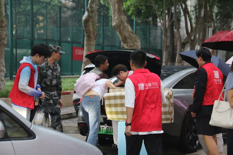 由包括新生在内的各个年级的学生志愿者组成的“明德红马甲”服务队成为校园最美风景线。他们穿梭于校门、宿舍楼、教学楼之间,主动搬运行李、解答疑问,用热情与耐心搭建起新生与校园的情感纽带。预备役队员以挺拔的身姿开展车辆引导工作,有效维护校园交通秩序,保障迎新期间道路畅通安全。