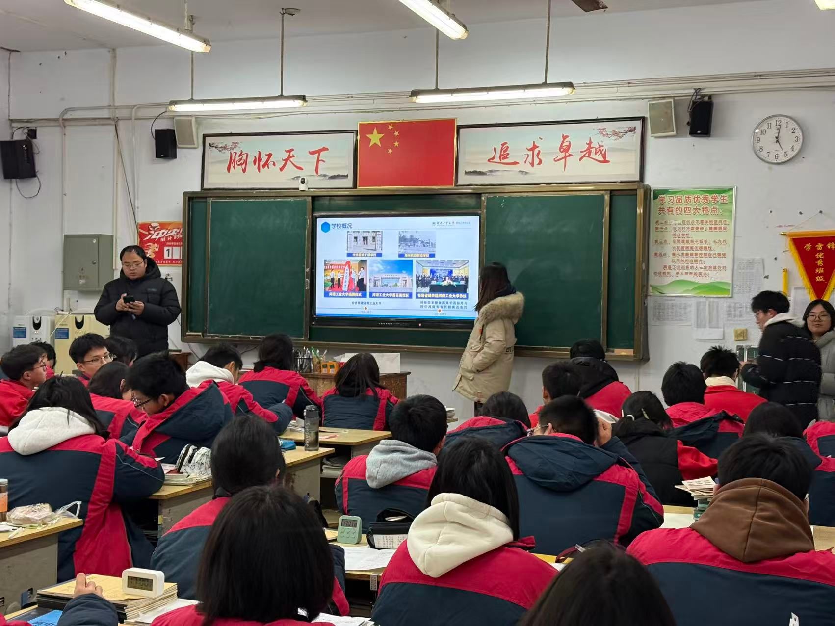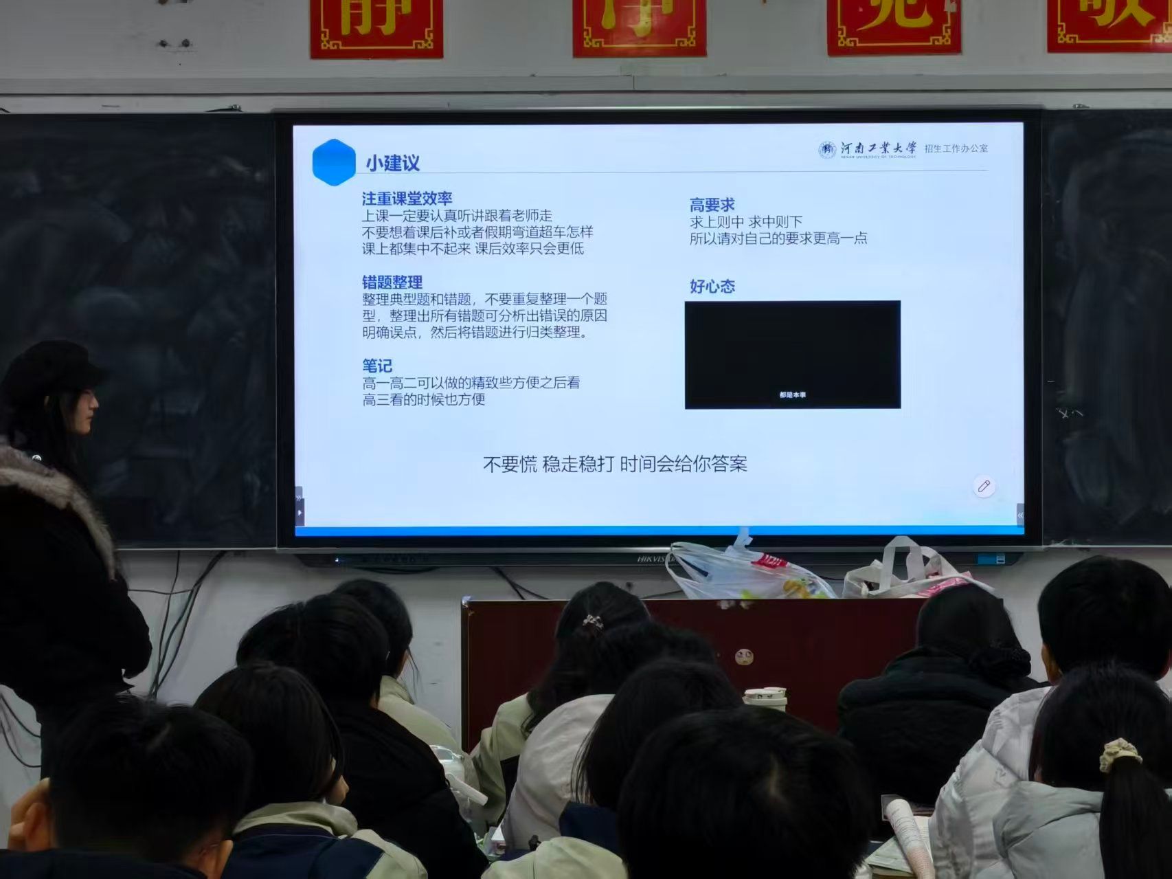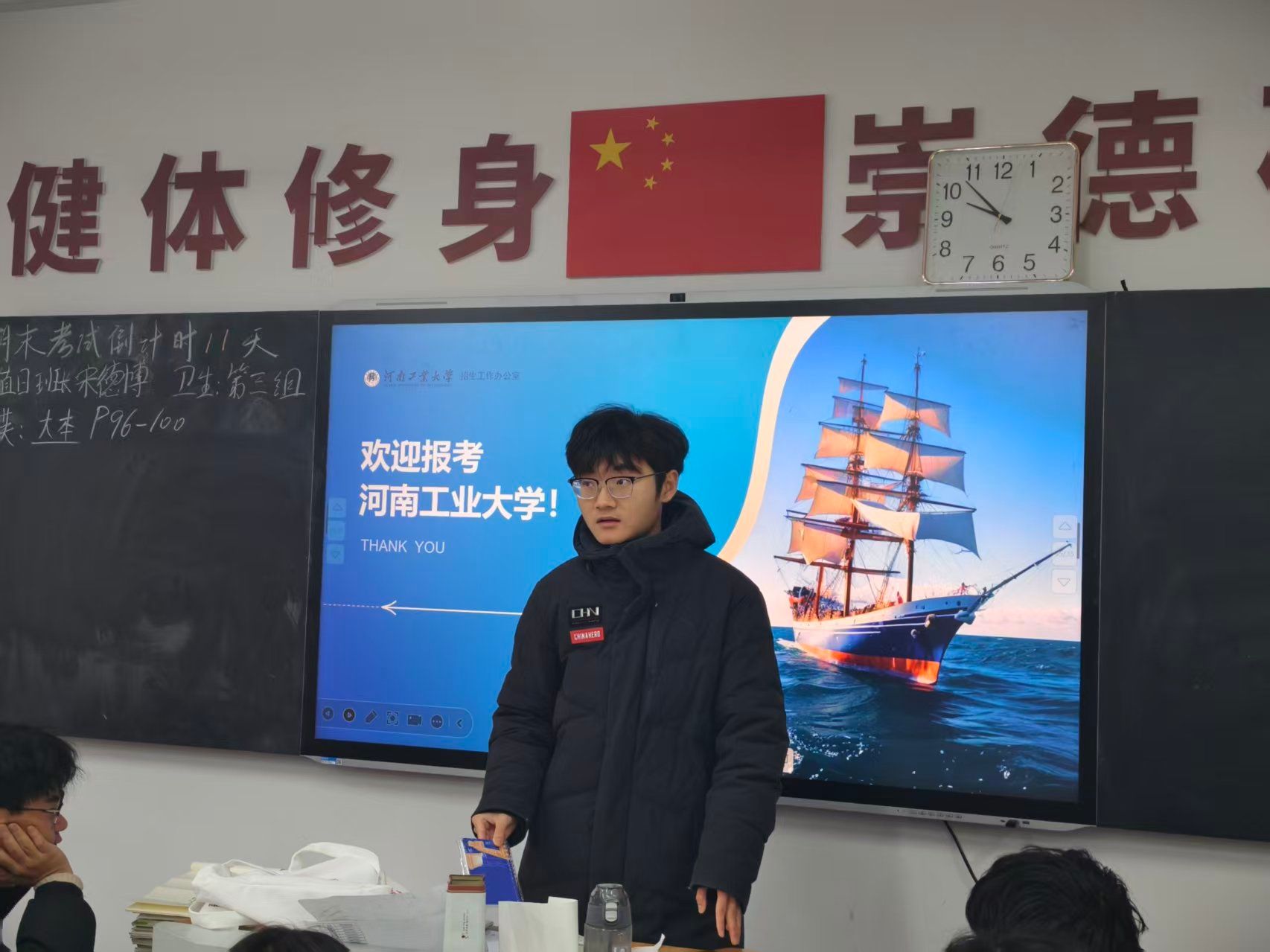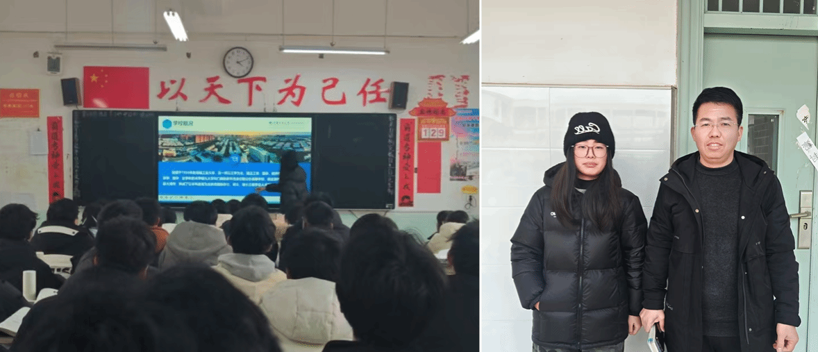 1月30日,空间信息与数字技术专业学子陈哲回到母校。他通过播放校园视频、展示精美PPT,系统介绍了河南工业大学的办学特色、优势专业及校园文化,并重点结合自身就读的空间信息与数字技术专业,分享了大学的课程体系、实践平台与发展前景。在互动环节,陈哲耐心解答了关于备考策略、专业选择与大学生活适应等问题,以“过来人”的真诚鼓励大家坚定目标,从容应考。