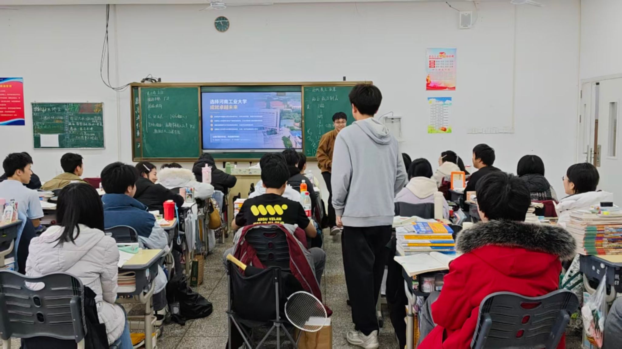 1月19日,南慧选和耿可欣回到母校三门峡市外国语高级中学开展宣讲分享。南慧选详细介绍了学校的师资力量与法学专业的发展前景,用具体数据和实例展现专业硬实力;耿可欣则聚焦校园文化与实践资源,分享了河工大丰富的学术活动、社团实践等内容,让学弟学妹们全面了解高校育人环境。两人默契配合,既传递了工大学子的责任担当,也在与学弟学妹的交流中进一步深化了自身对专业的认知。