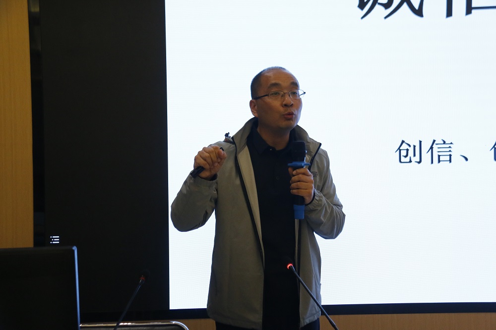 在热烈的掌声中,姬大鹏开始了精彩的报告,他首先从近期的社会热点角度出发,解读了诚信是人类生存、社会文明的关键;接着以自己的亲身经历来引导学生认识信仰、信用和信心的重要性,以及如建立正确的志向、愿景和价值观;最后通过四渡赤水等案例,启发学生通过逆向思维进行创新。