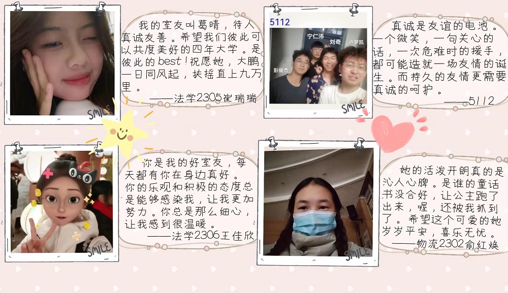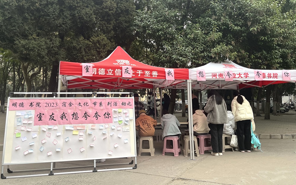 本次宿舍文化节活动由线上和线下两个环节组成。在校园内的线下活动点,同学们用文字和图画表达对室友的祝福并张贴在活动展板上。活动现场氛围热烈,吸引了很多路过的同学纷纷驻足,展示了同学们对友情的珍视,也传递了同学们对美好同窗情的期望与追求。