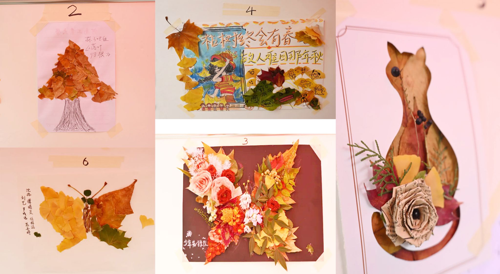 11月17日同学们携带扫帚、簸箕、垃圾袋等工具,齐聚操场,对校园的落叶开展有序的清扫工作并对树叶、树枝等自然元素进行收集。随后,同学们以此为灵感进行艺术创作,他们充分发挥想象力,巧妙融合自然元素,将精选形状各异的树叶、树枝精巧架构搭建、拼贴出栩栩如生的风景画,宛如构建出梦幻童话世界,将校园的秋冬美景永远留存。这些作品凝聚着对季节的热爱、对自然的敬畏,彰显出同学们卓越的艺术感知与对生活的细致洞察。