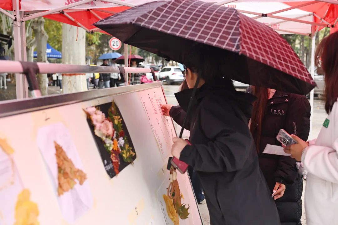 11月18日,同学们的作品在嵩山路校区的十字路口进行展出,吸引了大量同学前来驻足观赏、投票。每片树叶都是自然的馈赠,通过劳动、环保实践与艺术创作相结合,同学们动手+动脑将其转化为艺术作品,为校园增添了整洁与美感,拉近了人与自然的距离,并在同学们心中种下热爱生活、尊重自然、崇尚艺术的种子。