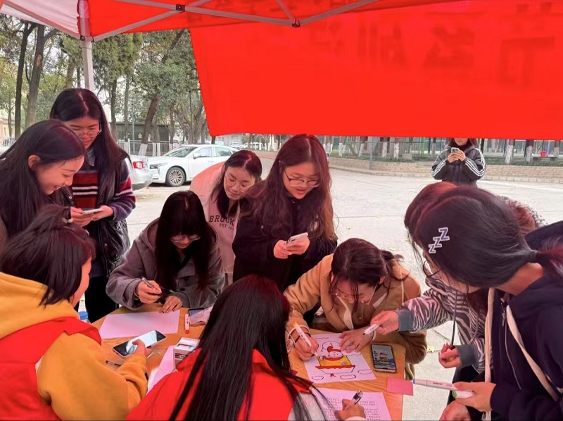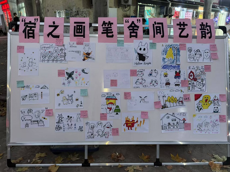 良好的宿舍生活对于大学生成长具有重要意义。宿舍,作为大学生活的小天地,是塑造人格、培养品德的隐性课堂。此次活动以“‘宿’之画笔,‘舍’间艺韵”为主题,以宿舍为参赛单位,宿舍成员分工明确、争分夺秒,各展奇才,有的负责勾勒轮廓,有的负责填充细节,利用有限的画纸发挥无限的想象力。艳黄明亮的海绵宝宝、憨态可掬的小雪人和小熊维尼、飞舞蹁跹的蓝色蝴蝶、聪明伶俐的喜羊羊、可爱俏皮的奶龙和奥特曼、眺望远方的小王子和他的狐狸……各种灵动的表情包和卡通人物纷纷亮相,整个比赛现场洋溢着青春的活泼与创意的无限可能。同学们在参与中体验乐趣,在合作中增进感情,在竞争中提升自我。