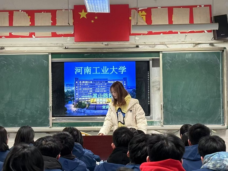 为积极响应我校2025年寒假“工大学子家乡行”专项社会实践活动的号召,由24级英语专业李宇萱、24级电子信息工程专业张旋、24级经济学专业韩艺佳、24级物联网工程专业杨雯雨、24级食品科学与工程专业隆紫鑫等五名同学组成的河南工业大学宣讲团,于1月17日分别前往中牟县第二高级中学和中牟县弘毅高级中学进行本次宣讲活动。此次活动旨在介绍河南工业大学以及为学弟学妹们解决学习生活上的困惑。
