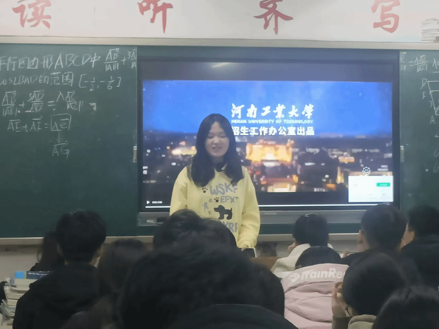 法学专业王灿怀揣着对母校的深厚情谊,回到高中母校——濮阳市油田第一中学,开启了一场意义非凡的宣讲之旅。此次活动旨在宣传和介绍河南工业大学,并帮助高中母校学子了解河南工业大学。
