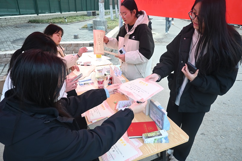 3月2日午后,线下普法活动在校园内展开。志愿者通过发放精心印制的宣传页,科普法律常识,帮助学生了解法律知识。活动现场,参与挑战赛的同学们围绕法律议题,对文学作品中蕴含的法律知识各抒己见。王艺涵同学以路遥《平凡的世界》中,矿工孙少平遭遇矿难殉职却仅获象征性补偿的文学叙事为切入点,通过文本细读与法理思辨,创造性关联我国现行《劳动法》第五十二条确立的劳动安全卫生保护权条款;吴雅涵同学从《红楼梦》的秦可卿之死切入,通过对比古今法律体系,揭示了传统性别秩序对司法正义的扭曲,并借《刑法》第二百三十六条强奸罪的法理演进,呼吁强化刚性刑罚震慑犯罪,使文学镜像照进法治现实,以预防性正义守护无辜者的生存尊严。