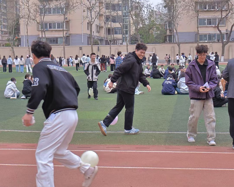 在“姓名接龙+动作”环节中,辅导员带领同学们围坐成圈,通过有趣的自我介绍和动作模仿迅速熟悉彼此,现场气氛瞬间活跃起来。随后的“气球大乱斗”和“占地为王”游戏中,同学们分组协作,既考验了团队默契,又展现了竞技精神。在“看表情包猜成语”和“123木头人”环节中,同学们脑洞大开,反应敏捷,将活动推向高潮。最后的“故事接龙绘画”环节更是创意十足,同学们通过共同完成一幅抽象画并编出无厘头的故事,展现了无限的想象力和团队合作能力。