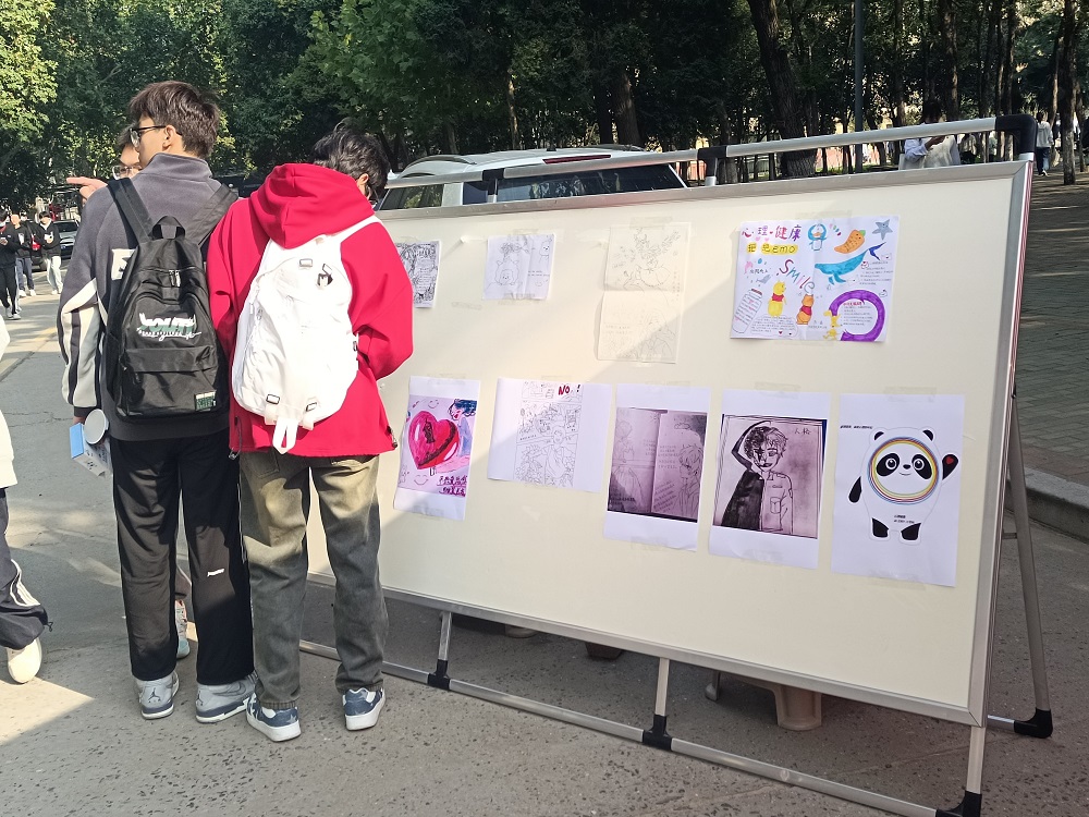 将本次活动中的16幅优秀作品在校园内进行了公开的布展,吸引了众多学生驻足观赏,现场气氛热烈。