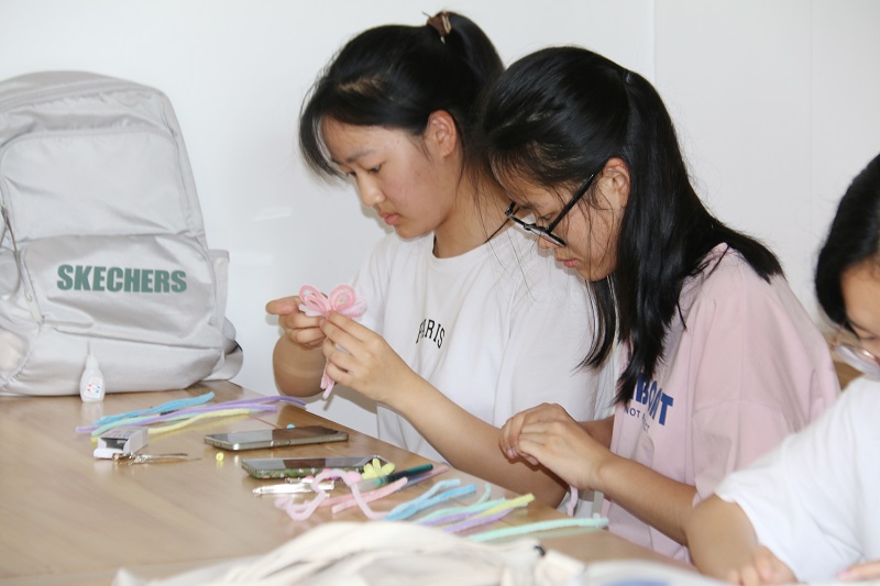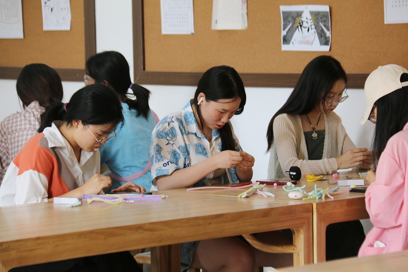 同学们创作完成后,选择了一些小的装饰品进行点缀。随后,大家积极主动地展示作品并说明自己的创作理念和想法。最后扭扭棒成品被当作礼物,或带回宿舍,或赠与朋友。一根扭扭棒虽简单,却在初夏的季节里点缀了精彩的大学生活。