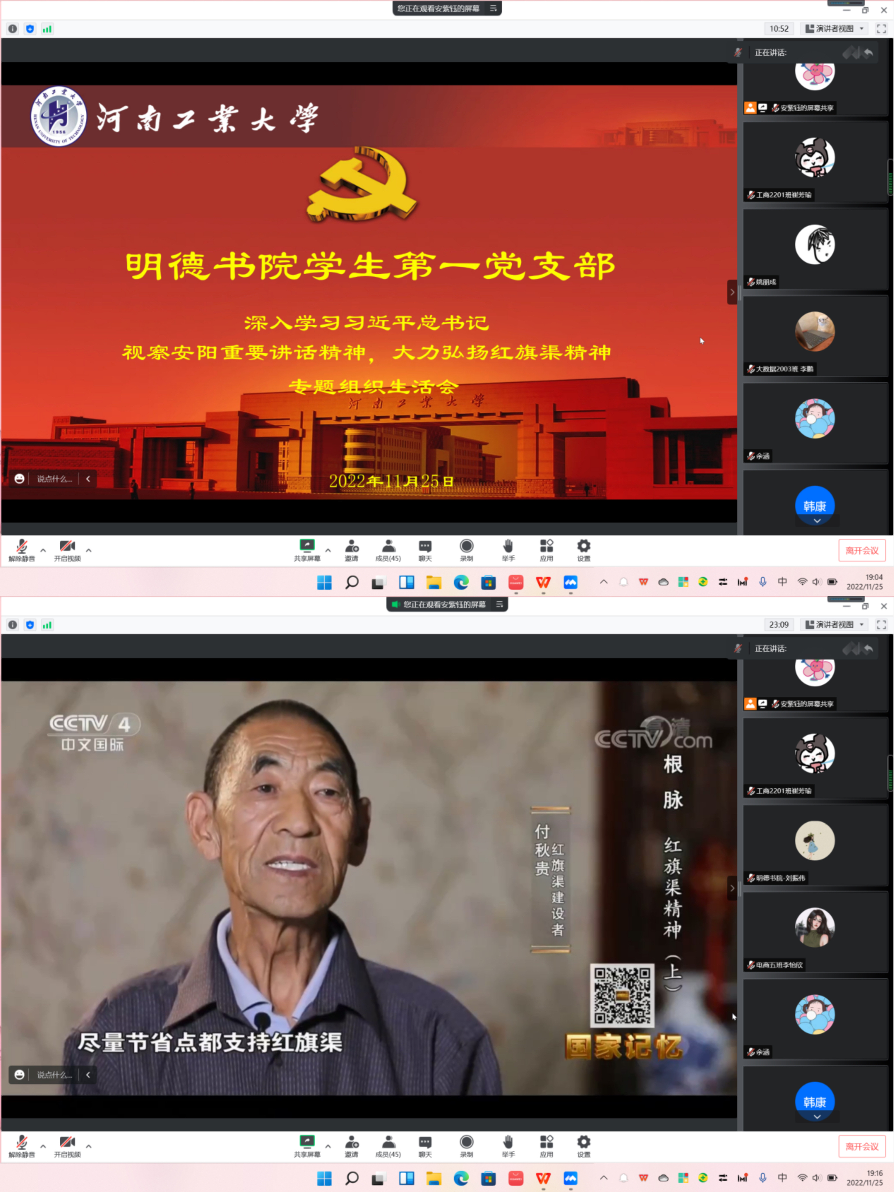 教工党支部、学生第一党支部、学生第二党支部及国防预备役党支部等四个党支部精心组织安排,带头深入学习习近平总书记视察安阳重要讲话精神,深入感悟红旗渠精神,并分别于11月25日、11月26日以“线上+线下”的模式组织召开专题组织生活会,美高梅金殿娱乐场