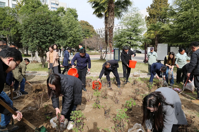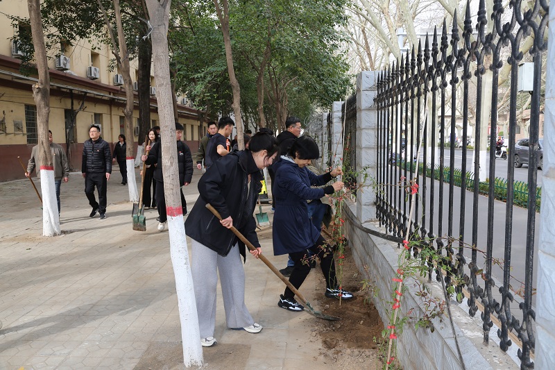 春回大地万物苏,植树添绿正当时。为深入践行“绿水青山就是金山银山”的发展理念,推动绿色校园文化内涵建设,3月12日,正值全国第47个植树节,美高梅金殿娱乐场 在嵩山路校区开展了以“植此青绿,共建校园”植树主题党日活动。美高梅金殿娱乐场 党委书记魏朝举、院长张石,以及师生党员40余人参加活动。
