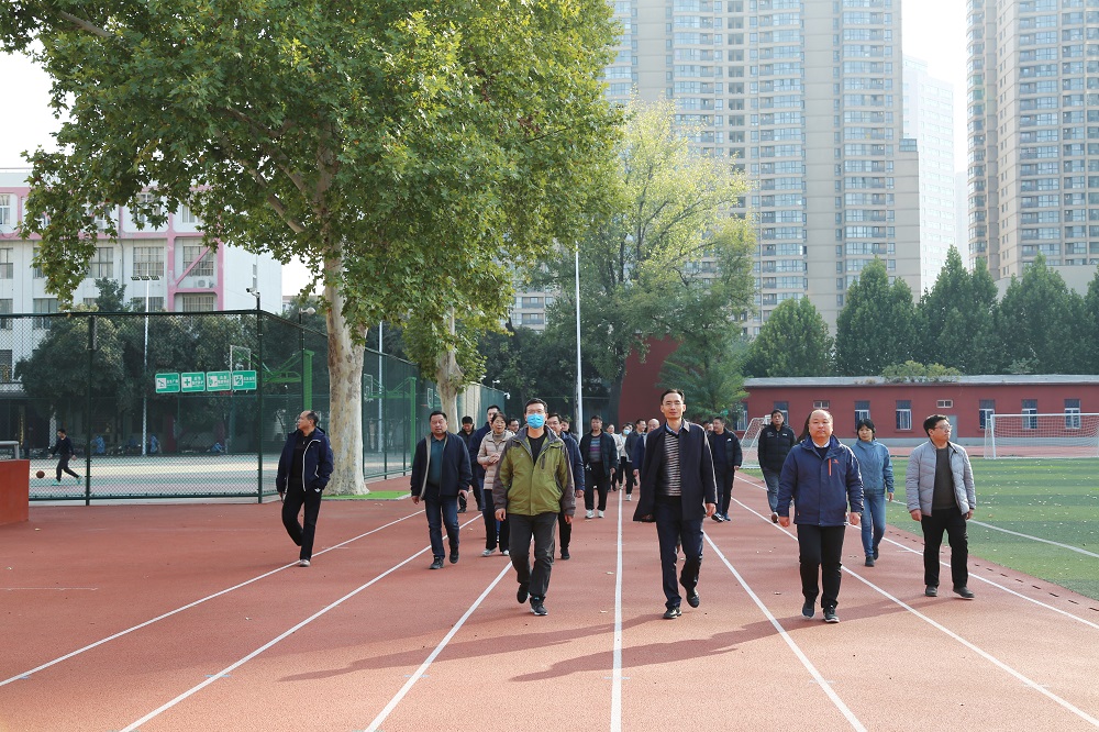 秋阳和煦,微风习习。教职工们在操场集合之后迎着暖阳,沿着400米标准跑道,伴随着校园广播《歌唱祖国》的激昂旋律,踏着铿锵有力的节奏昂首迈步,在轻松欢乐的氛围中交流着生活和工作,圆满地完成了健步走任务。