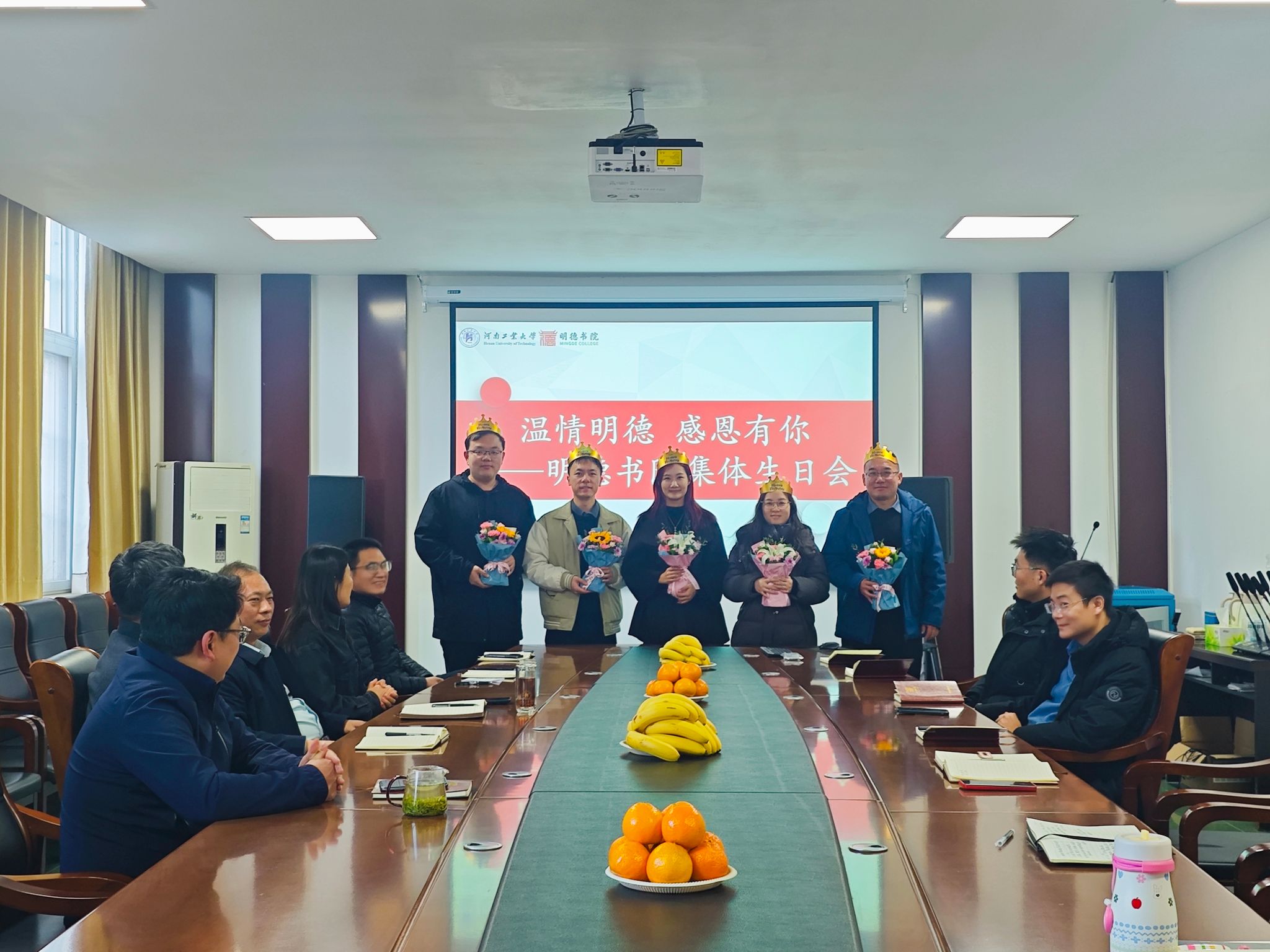 在207会议室为2025年度逢十生日的教职工举办“温情明德,感恩有你”集体生日会。美高梅金殿